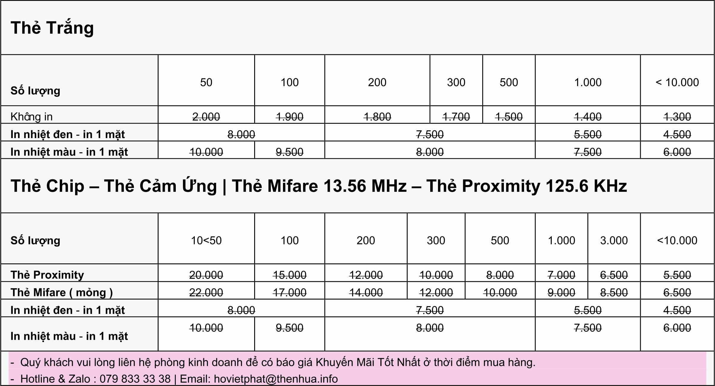 Bảng báo giá in thẻ nhựa tại Xưởng In Hồ Việt Phát | LH: 079 833 33 38